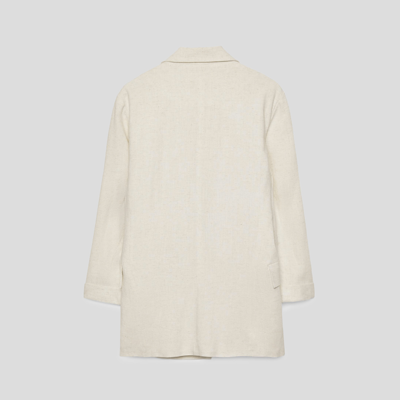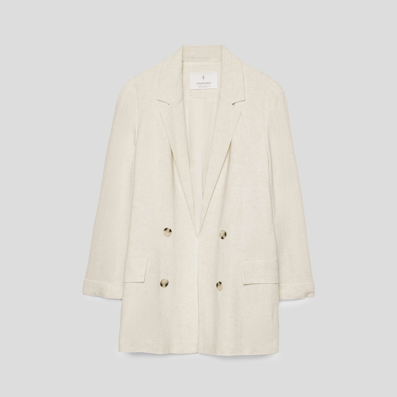 کت لینن چهاردکمه گندم استرادیواریوسدور سینه: ۱± ۱۰۰ | قد آستین: ۱± ۶۵ | قد: ۱± ۷۳(تمام اندازهها به سانتیمتر و تقریبی میباشند)قد آستین از کنار یقه اندازه گیری شده.