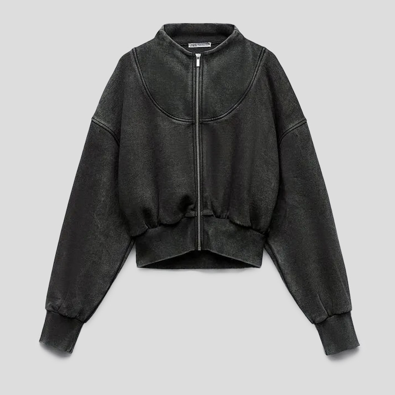 سویشرت زیپی واشد یقه ایستاده زاراS دور سینه: ۱± ۱۱۲ | قد آستین: ۱± ۷۷ | قد: ۱± ۵۰M دور سینه: ۱± ۱۲۰ | قد آستین: ۱± ۷۷ | قد: ۱± ۵۰L دور سینه: ۱± ۱۲۶ | قد آستین: ۱± ۷۷ | قد: ۱± ۵۳(تمام اندازهها به سانتیمتر و تقریبی میباشند)قد آستین از یقه اندازهگیری شده است.